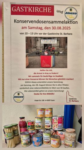 Als Kita unterstützen wir mit unseren Familien und Kindern die Gastkirchen St.Barbara in unserem Stadtteil. Gemeinsam sammeln wir Konserven für Bedürftige.